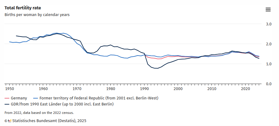 最新的讲明还提到,德国籍的女性生养率降至1.23,为1996年以来的最低水平;居住在德国的番邦女性生养率为1.84,也比2023年着落了2%,不竭了2017年启动的着落趋势。