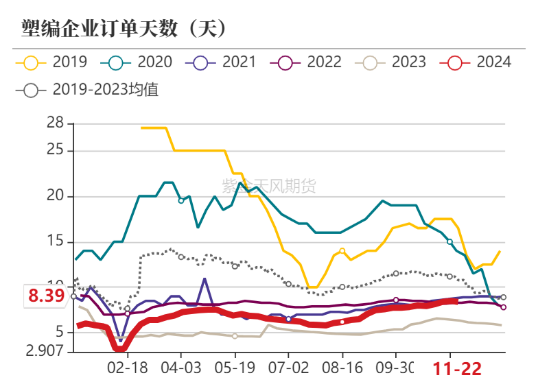 塑编企业订单天数回落,11月22日当周塑编企业订单天数8.39天。