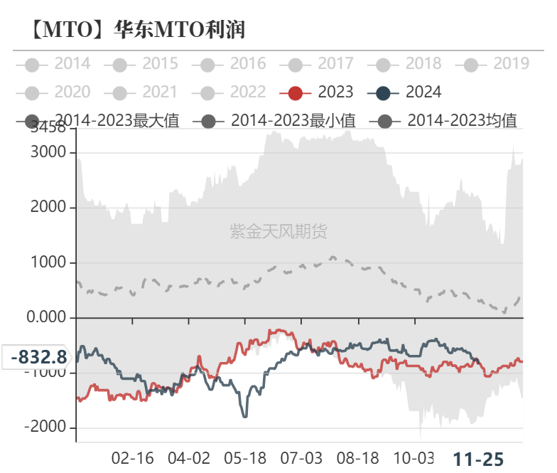 MTO利润近期回落,主要由于甲醇近期受伊朗泊车影响施展偏强。